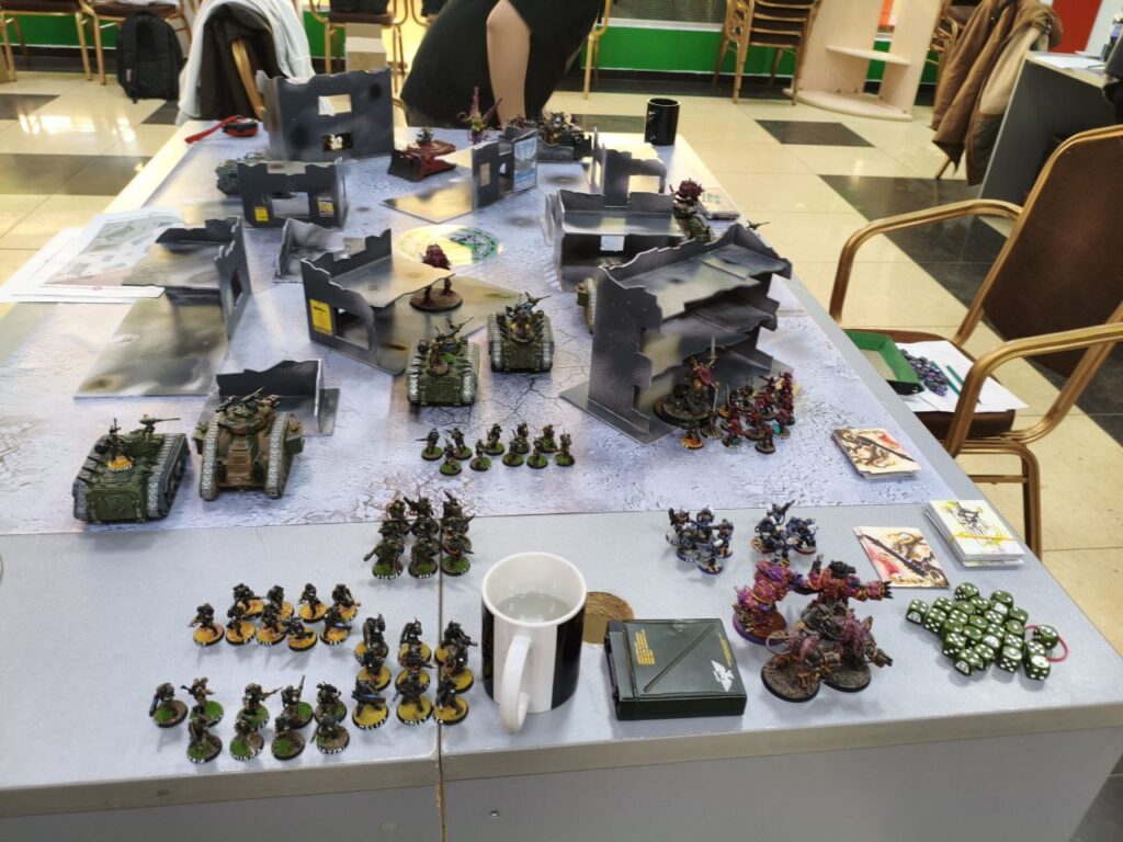 На последних турах генератор парингов Best Coast Pairings работал немного странно. Ожидалось, что в третьем туре я сыграю против Necrons или Death Guard, а пара Space Wolves – Chaos Demons должна была встретиться в четвёртом туре. Однако программа распределила пары иначе. Если бы она сработала ожидаемым образом, то игра Space Wolves – Chaos Demons стала бы матчем за второе место, а Leagues of Votann – Chaos Space Marines — за третье.